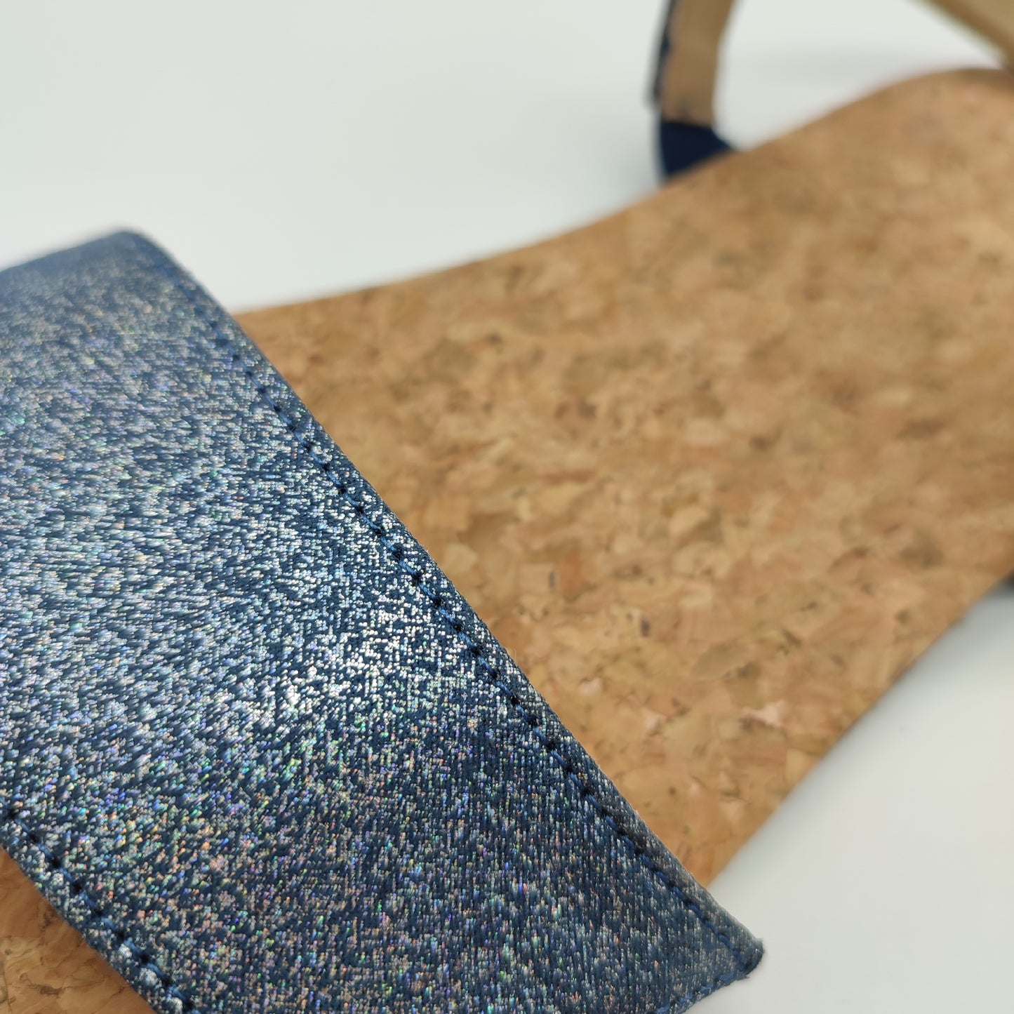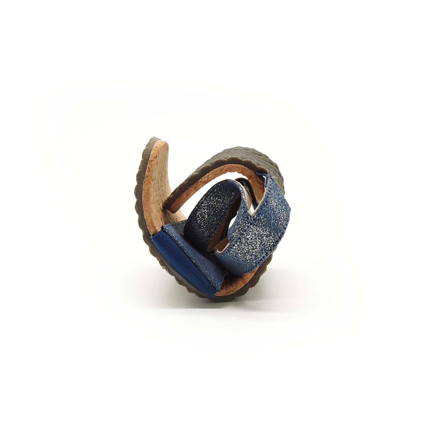 Notre semelle est unique et a nécessité la création de moules spécifiques. En effet, comme elle est sans talon, ni renfort (voûte plantaire), nous avons dû créer nos propres moules afin de respecter nos critères physiologiques. Notre semelle est fine et plate, de même épaisseur sous tout le pied (7mm). Nous avons donc dessiné et déposé notre semelle. nous avons choisi de faire apparaître des alvéoles en dessous pour stimuler les points réflexes du pied et donner plus de flexibilité à la semelle pour lui permettre d'accompagner le déroulé du pied sans contrainte. Large à l'avant, elle respecte la morphologie du pied et permet aux orteils de retrouver leur liberté améliorant ainsi la proprioception. Elle est composée de 70% de caoutchouc naturel recyclé (anciennes semelles) et de 30% de caoutchouc naturel neuf, c'est la proportion idéale pour garantir la solidité de la semelle. Et pour sensibiliser au recyclage, nous avons choisi d'incorporer du marc de café récupéré chez des restaurateurs ou des chutes de liège, déchets de l'industrie portugaise.