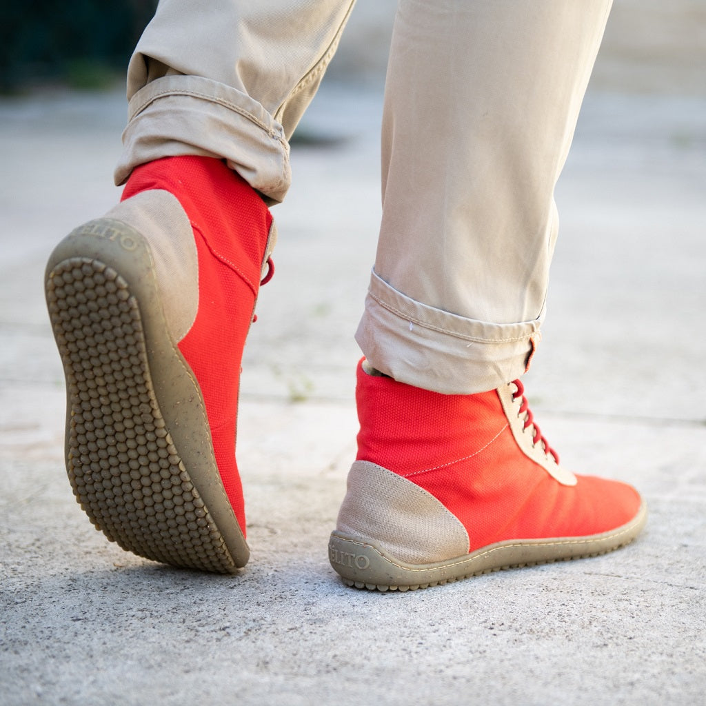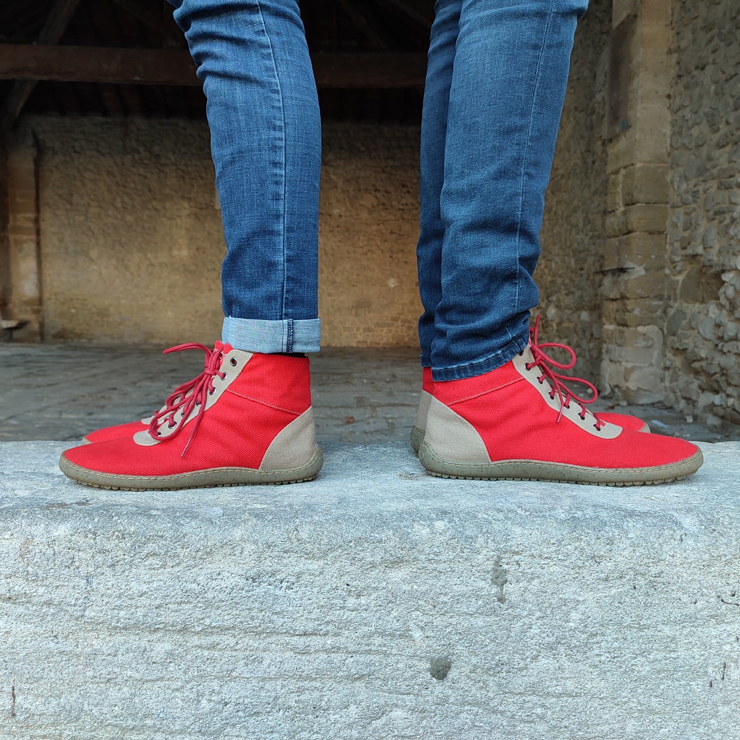 La chaussure barefoot permet de retrouver les bienfaits et les sensations de la marche pieds nus, marche originelle et naturelle de l’Homme. C’est une chaussure ultra souple et confortable, qui respecte la morphologie du pied et lui donne sa pleine liberté de mouvement. Avec sa forme large à l’avant, elle convient également aux pieds déformés (hallux valgus,…). Elle laisse la possibilité au pouce de se réaligner. Sa semelle fine (7mm) procure un automassage grâce au ressenti des reliefs du sol qui stimule les points réflexes du pied. La posture, le retour veineux, le renforcement des muscles des pieds, des chevilles et des mollets sont améliorés, préservant ainsi les genoux, les hanches et le dos.