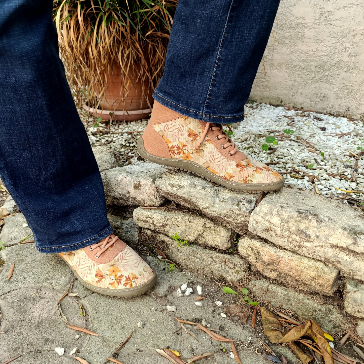 La chaussure barefoot permet de retrouver les bienfaits et les sensations de la marche pieds nus, marche originelle et naturelle de l’Homme. C’est une chaussure ultra souple et confortable, qui respecte la morphologie du pied et lui donne sa pleine liberté de mouvement. Avec sa forme large à l’avant, elle convient également aux pieds déformés (hallux valgus,…). Elle laisse la possibilité au pouce de se réaligner. Sa semelle fine (7mm) procure un automassage grâce au ressenti des reliefs du sol qui stimule les points réflexes du pied. La posture, le retour veineux, le renforcement des muscles des pieds, des chevilles et des mollets sont améliorés, préservant ainsi les genoux, les hanches et le dos.